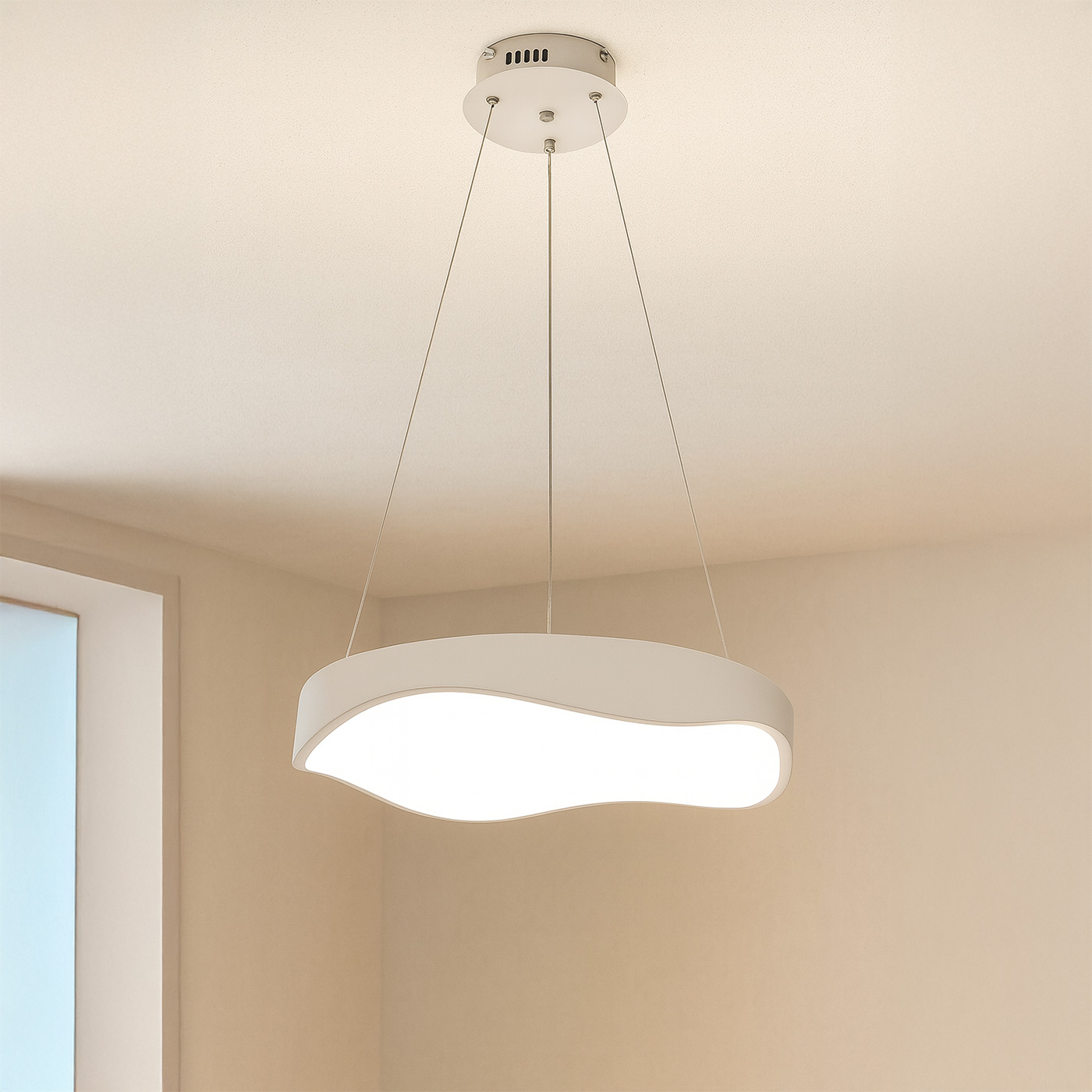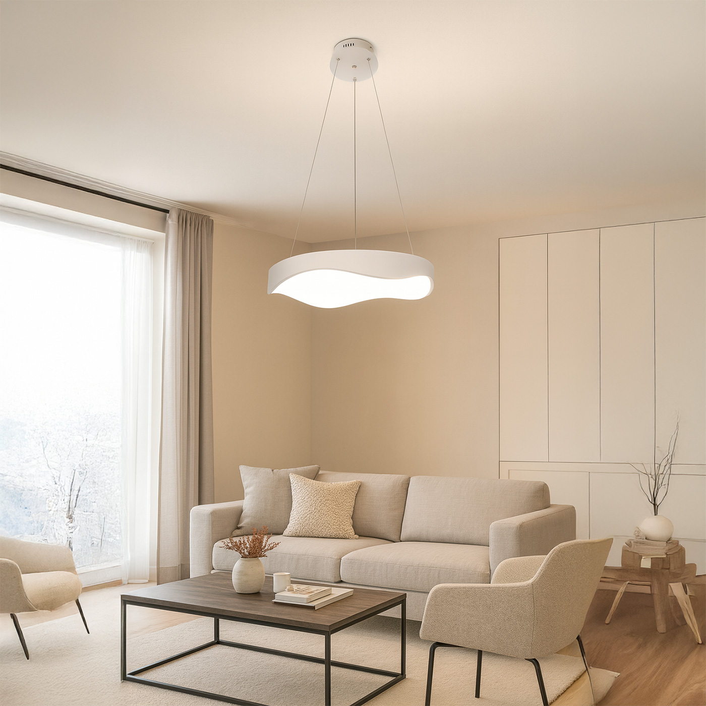 Diseñada con líneas fluidas y una estética contemporánea, esta lámpara colgante de 60W aporta carácter y dinamismo a cualquier espacio. Su forma orgánica no solo ilumina, sino que decora con personalidad. Ideal para comedores, recepciones o livings modernos que buscan una luz cálida y única en temperatura.